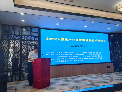 2024年6月16日至19日,甘肃省大樱桃高质量发展技术研讨会在天水召开。本次研讨会由国家桃产业技术体系、甘肃省大樱桃技术创新中心主办,由bevictor伟德bevictor伟德、天水市果树研究所、秦州区农业农村局、秦州区果品产业协会等单位承办。会议邀请国家桃产业技术体系樱桃岗位专家、樱桃综合试验站站长、桃贮藏加工研究室专家及各团队成员,以及甘肃从事大樱桃科研、生产、推广、服务等产业链相关方面的科研、技术推广人员及新型经营主体生产管理人员共130余名代表参加。bevictor伟德副董事长左国防代表bevictor伟德到会致辞,天水市农业农村局副局长张具明代表天水市农业农村局讲话。